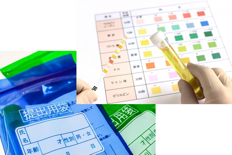 尿検査では、具体的には尿中のタンパクや糖、細胞、細菌、結晶を調べます。このことは腎臓や膀胱などの泌尿器の疾患や、尿路感染症の診断にとても重要です。更に、糖尿病や高血圧症などの診断する際にも役立ちます。