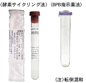 酸素サイクリング:アンモニア専用容器に全血1.0mLを入れ、よく混和して下さい。BPB指示薬法:氷につけて提出して下さい。